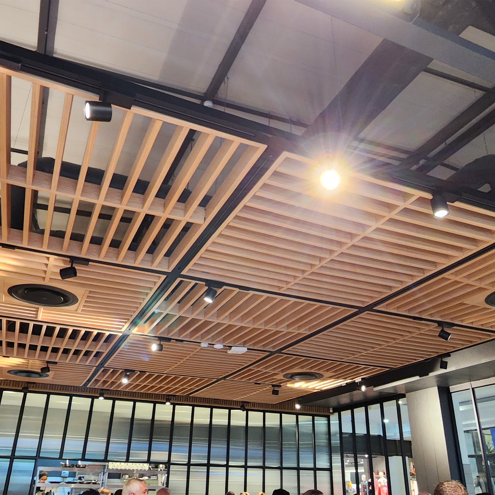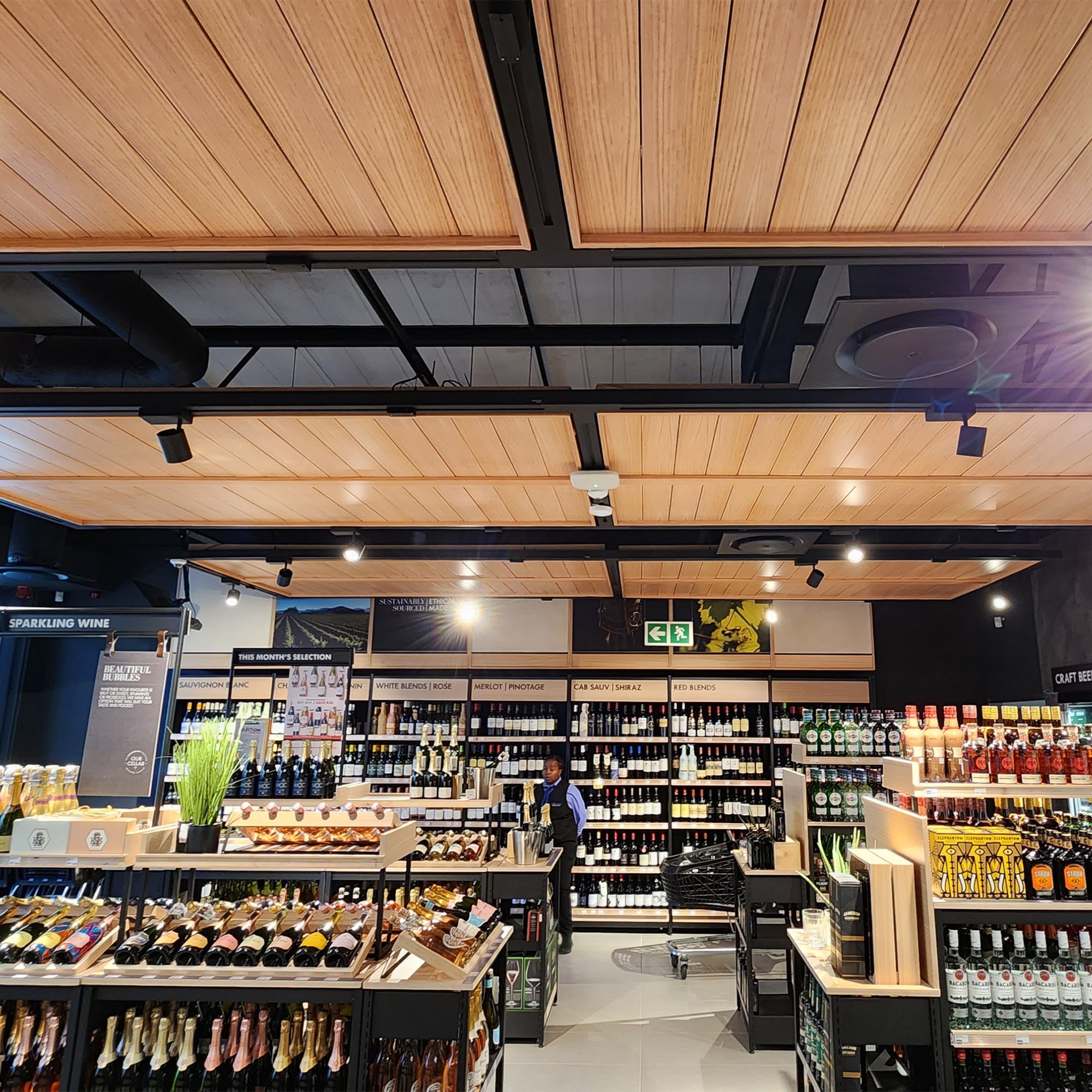 - Bulkheads/Ceiling Baffles: Designed to create visually striking overhead installations that enhance the retail environment while providing acoustic and visual definition.